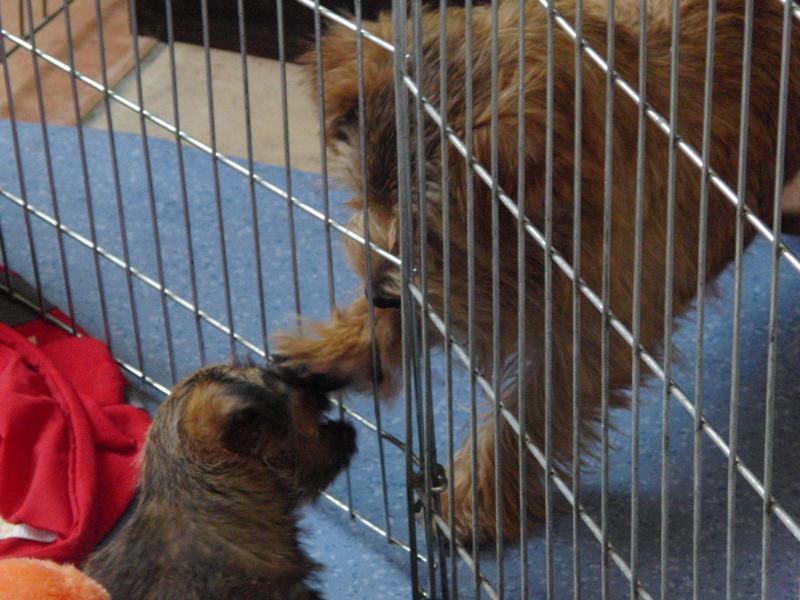 09.02.2014 - Wir sind ins Wohnzimmer umgezogen und haben die anderen Norfolks kennengelernt. Unsere kleine Welt wird immer größer!
